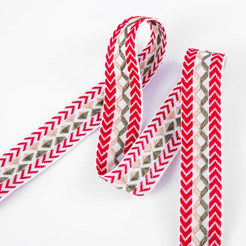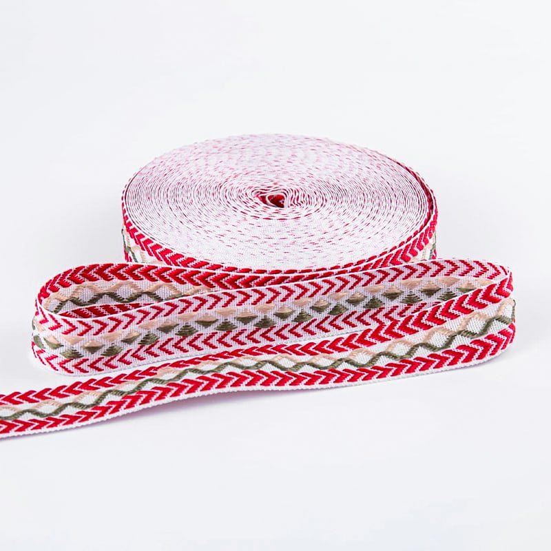 Ez a 2,5 cm széles, kétoldalas, overlockolt jacquard heveder kétoldalas jacquard mintával rendelkezik, amely mindkét oldalán gyönyörű mintákat mutat. Kivételes vizuális szépséggel és kidolgozottsággal büszkélkedhet. Prémium minőségű hálófonalból készült, és fejlett jacquard technológiával kombinálva ötvözi az esztétikát a funkcionalitással, így kiváló minőségű ágyneműhöz, lakberendezéshez és egyedi termékekhez is alkalmas.